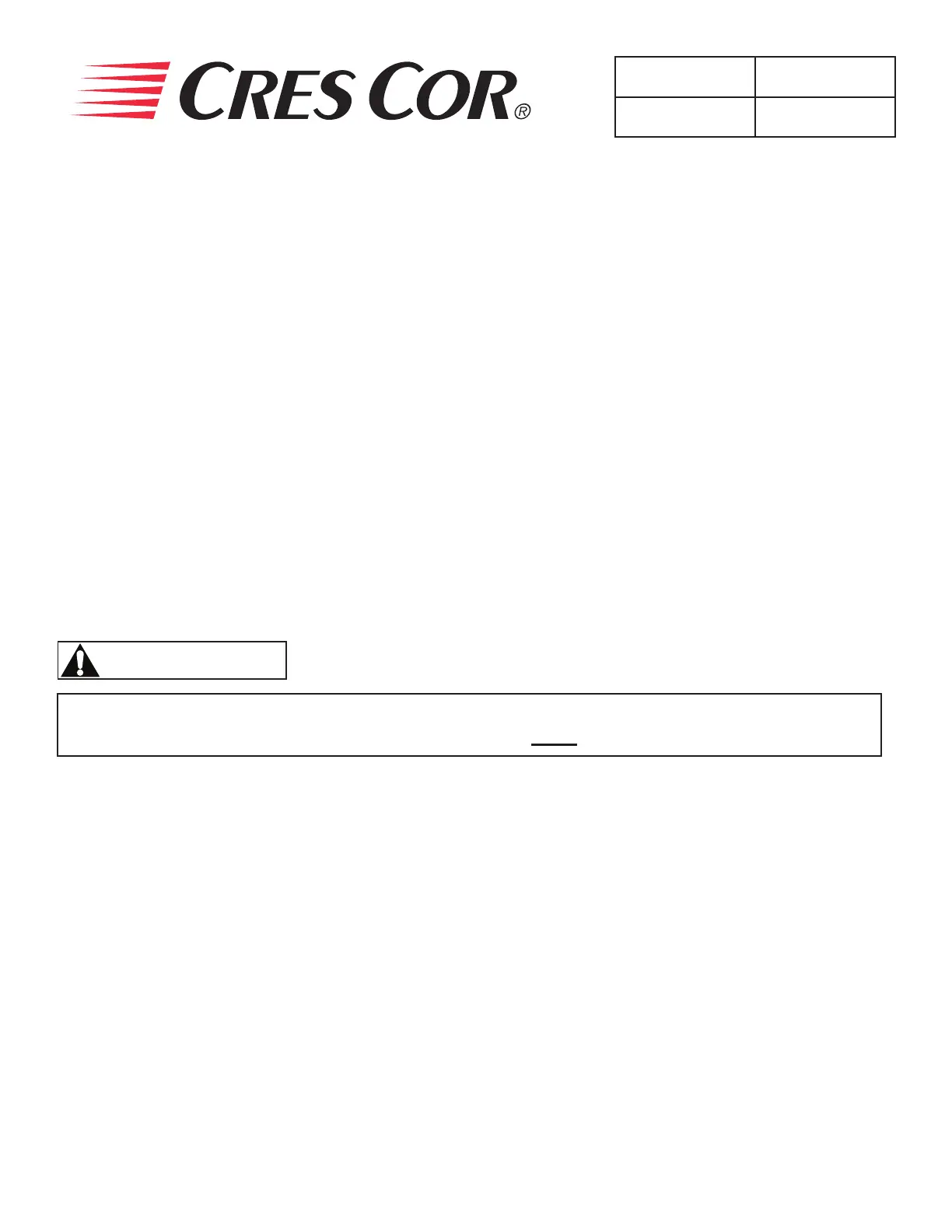 Call Toll-free: 877-CRES COR (273-7267) • Fax: 800-822-0393 • www.crescor.com