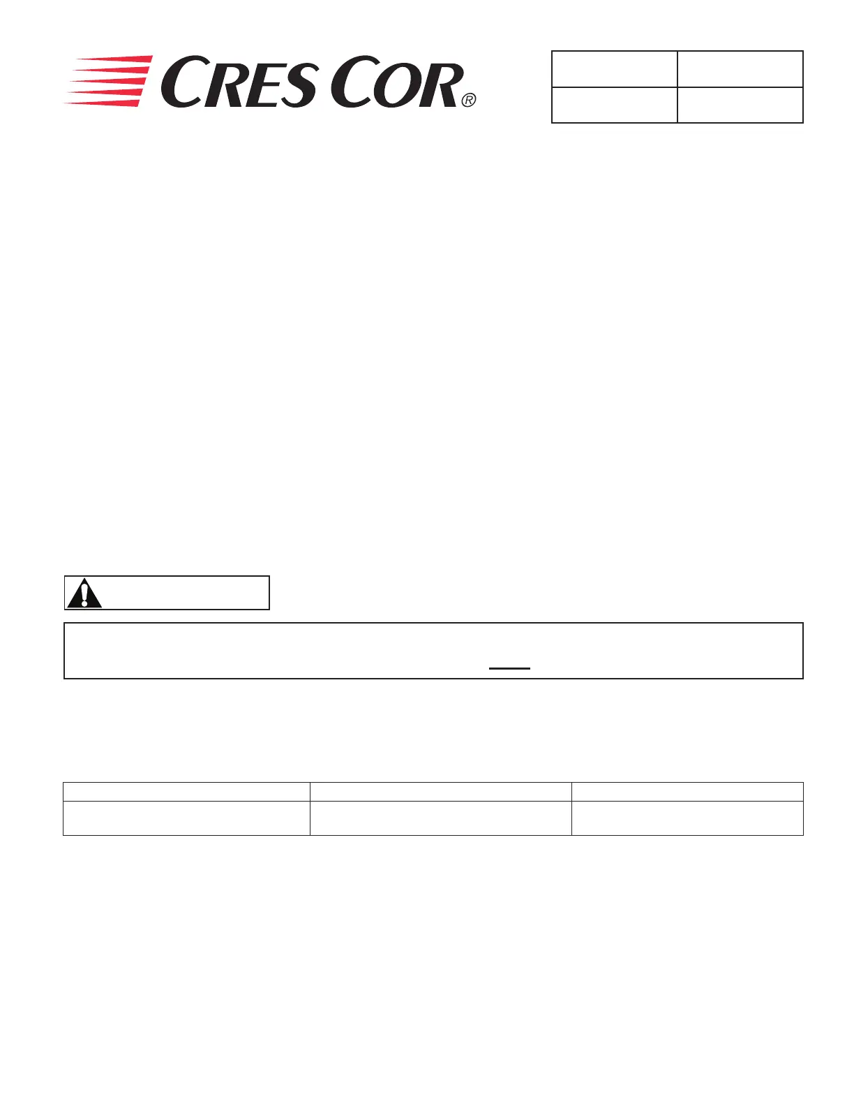 Call Toll-free: 877-CRES COR (273-7267) • Fax: 800-822-0393 • www.crescor.com