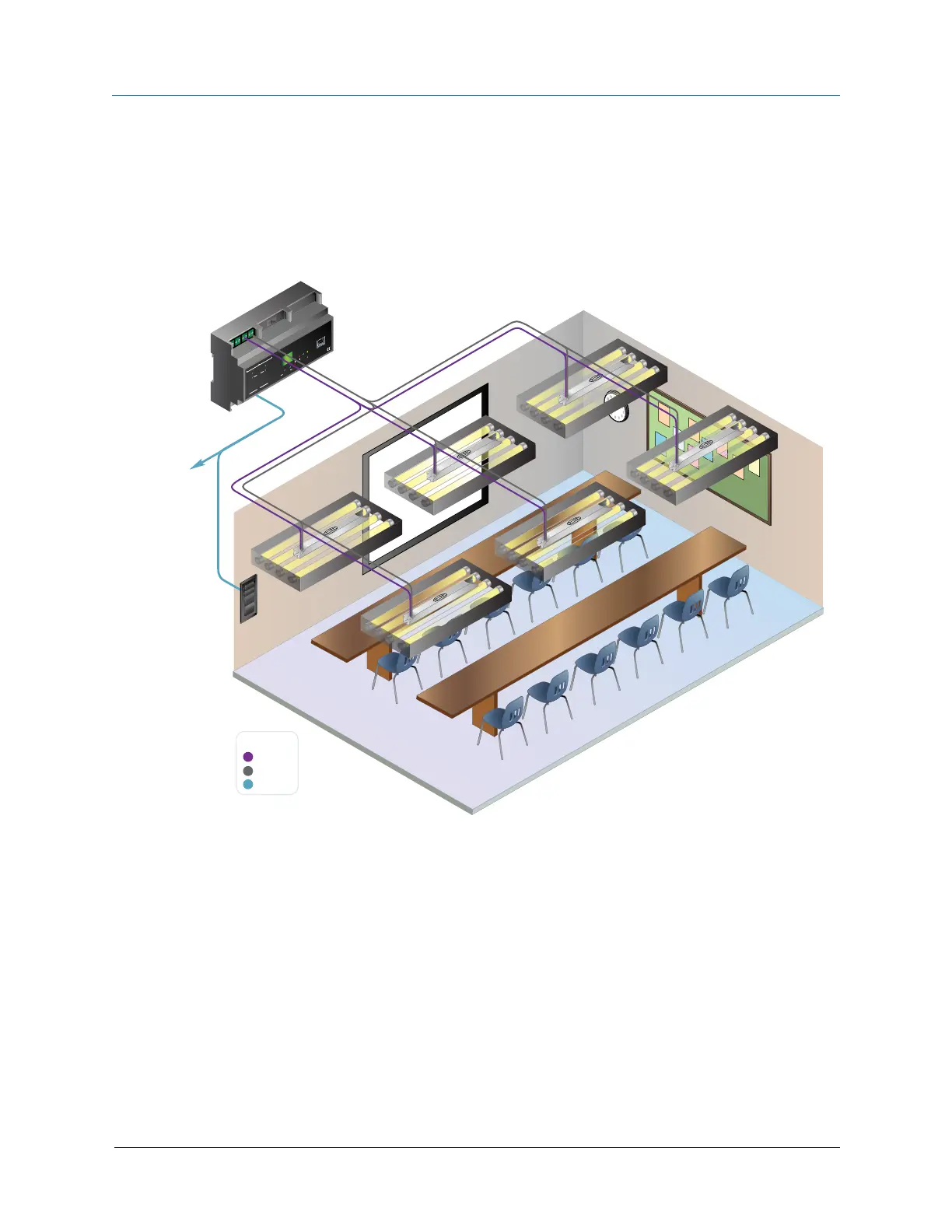 The example below shows how a DALI control system can be utilized in a training room setting.