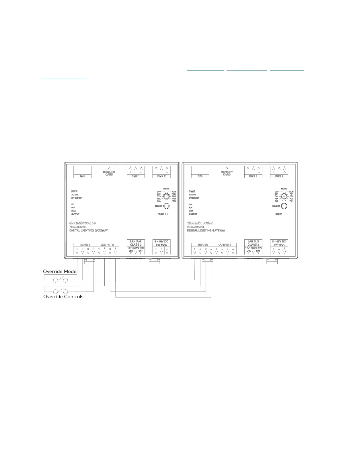 INPUT1: A closed contact enables Override mode.