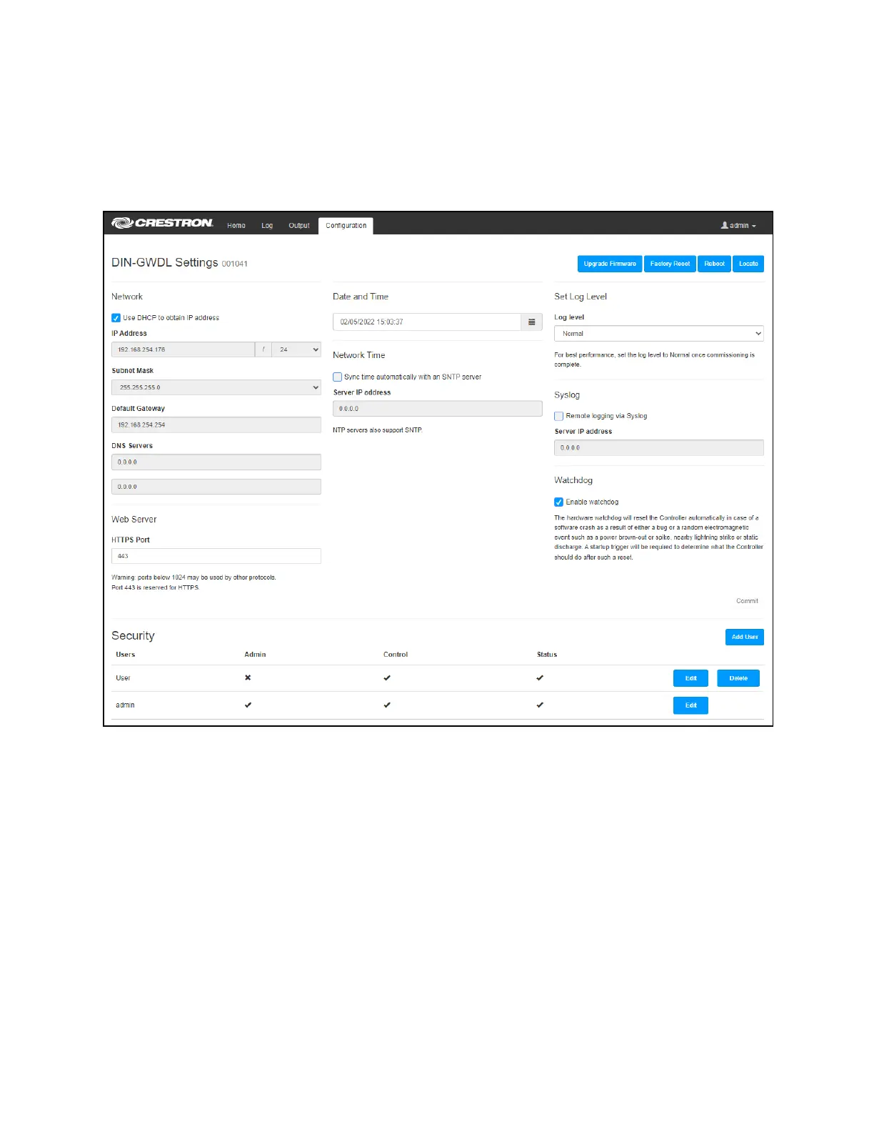 The Configuration tab is used to modify the settings of the DIN-GWDL.