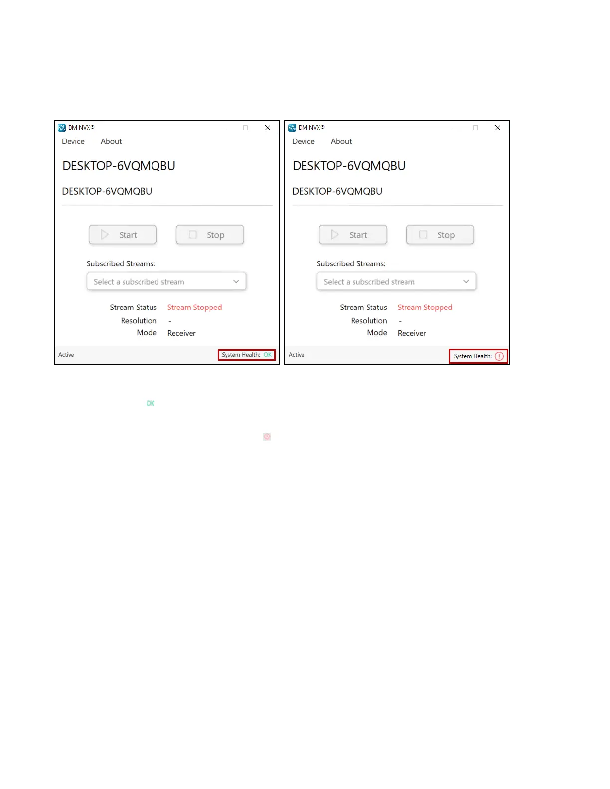 DM NVX Main Page - System Health, OK or !