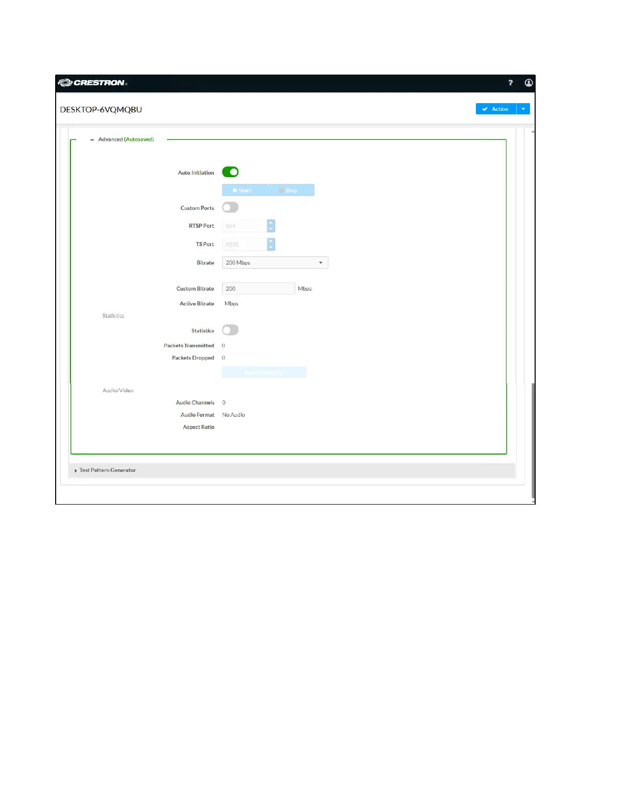 Settings Tab - Stream, Advanced (Transmitter Shown)