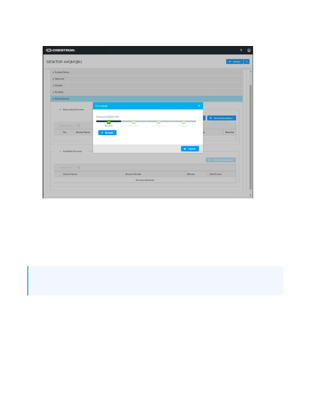 1. Click the Load Subscriptions button. The File Upload pop-up dialog box opens.
