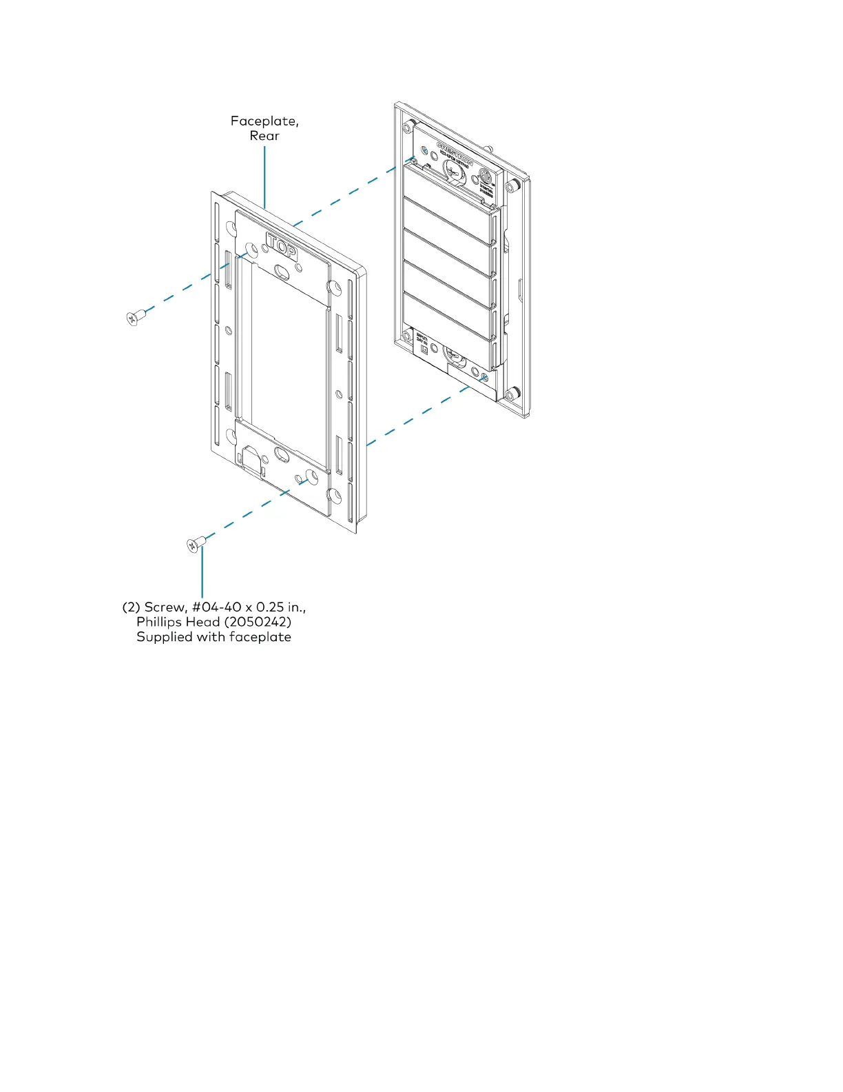 4. Attach the metal backplate to the device using two 04-40 x 0.25in. screws (2050242).