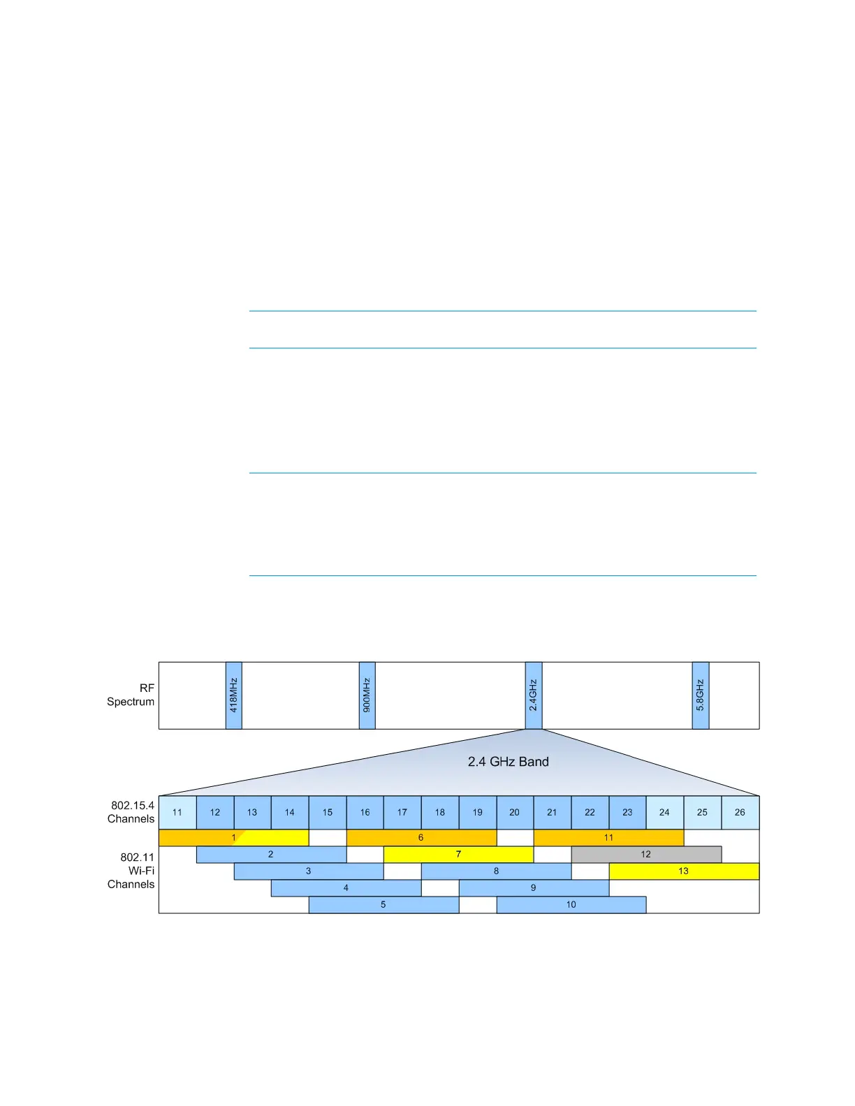 The 2.4 GHz Wireless Network illustration below shows the division of the 2.4 GHz band as