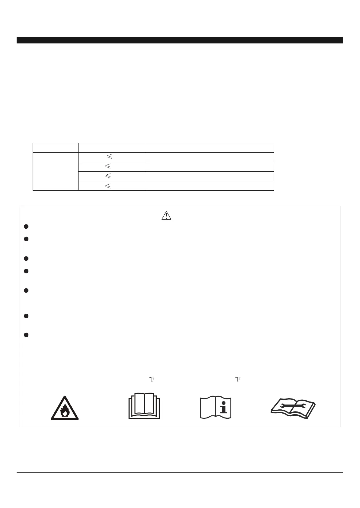 risk of burning and explosion if you comply with the following table to install your air conditioner in a room with
