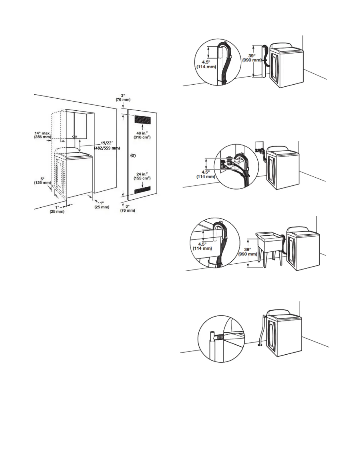 ne pas l’installer à plus de 96" (2,44 m) du fond de la laveuse.