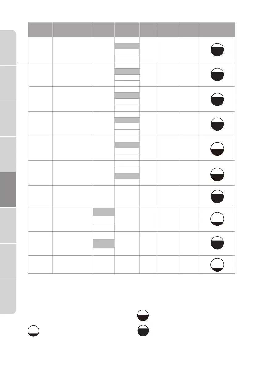 * Table in grey is an initial setting. “Y” are all optional functions you can select.