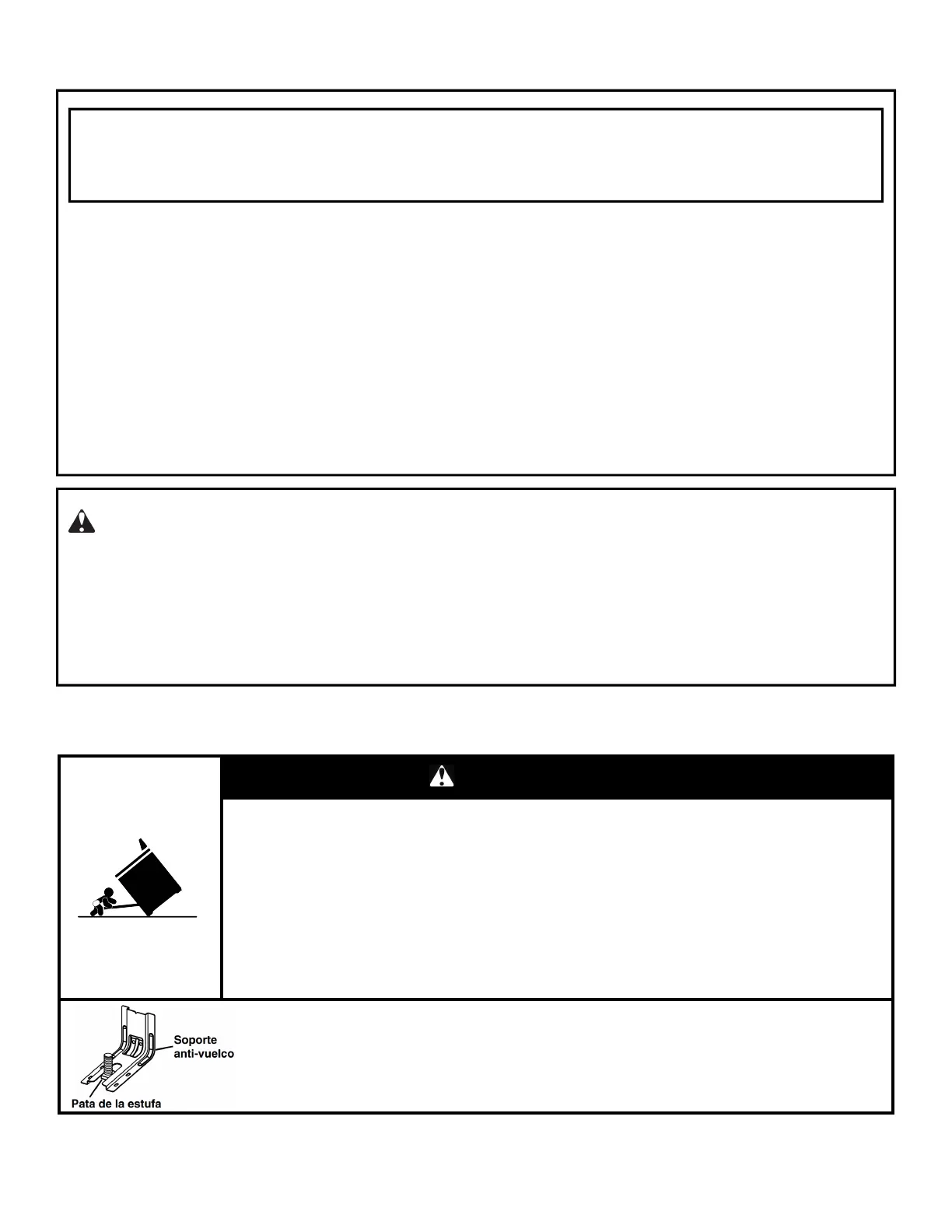 La estufa no se volteará durante el uso normal. Sin embargo, la estufa se puede voltear si aplica mucha fuerza o peso sobre la puerta