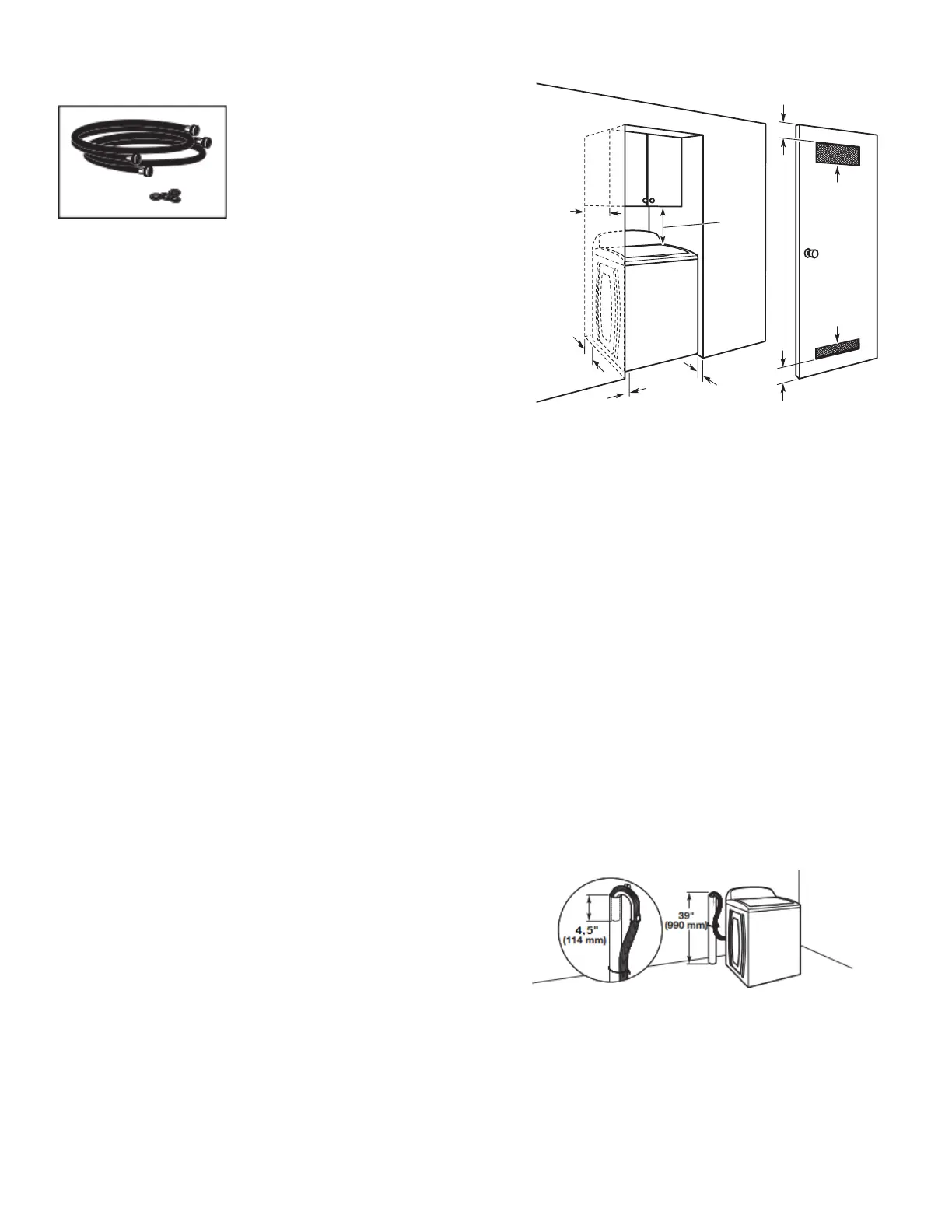 NOTA: Todas las lavadoras de deben tener 20" (508 mm) de