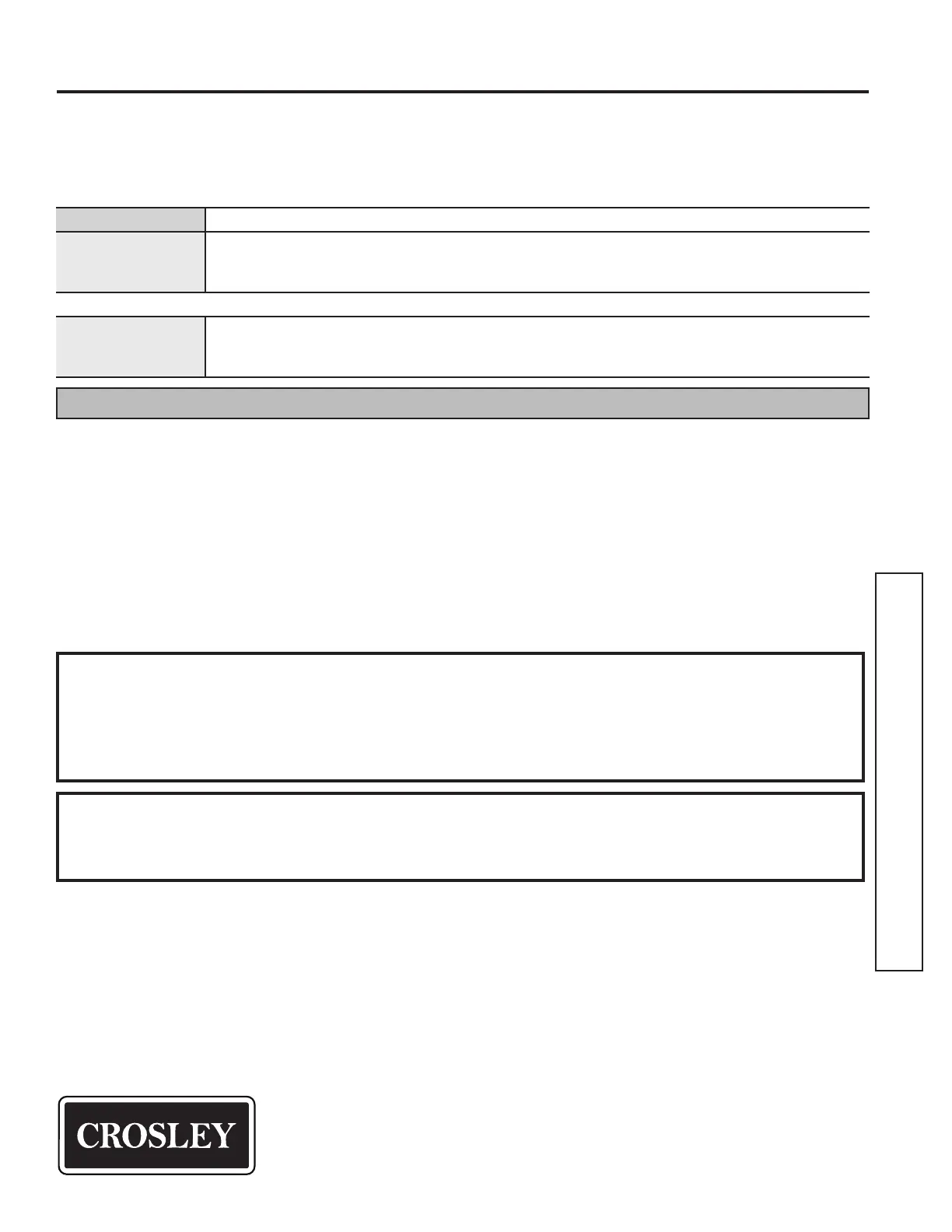 autorizado del servicio técnico. Para programar el servicio técnico, comuníquese con Crosley al 800.544.4780.