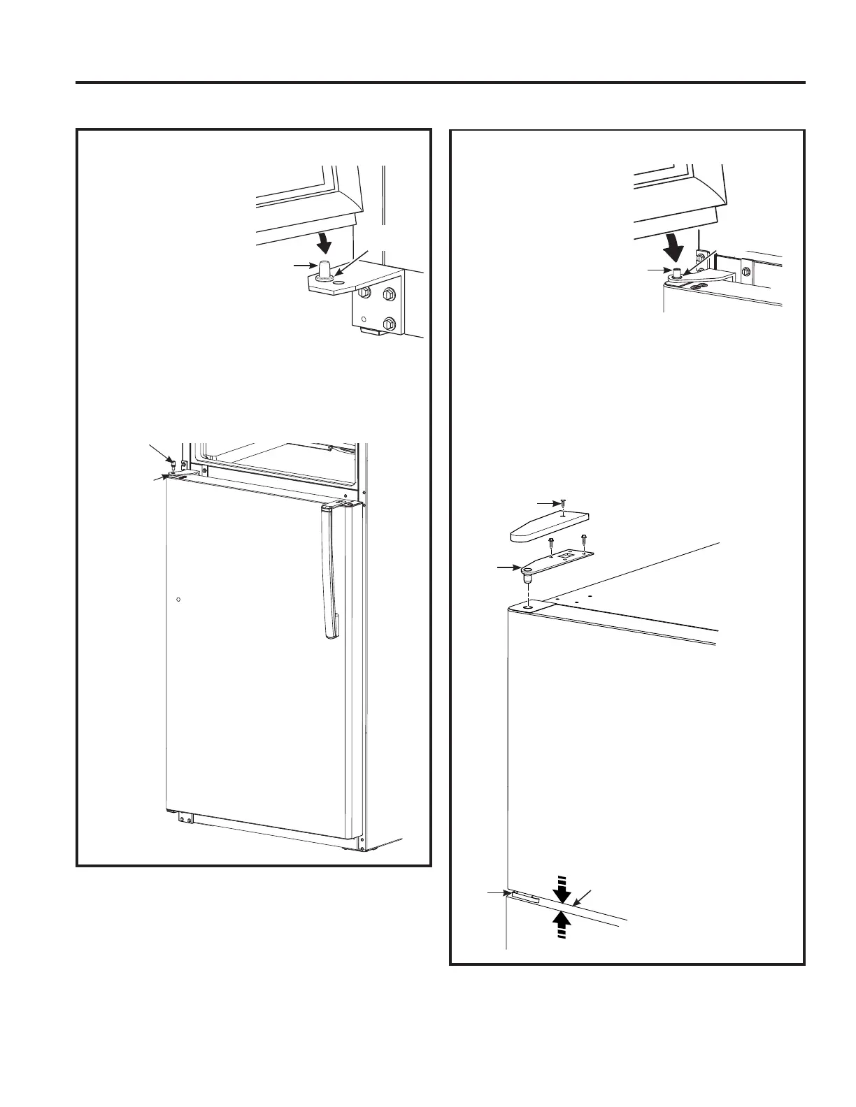 4. Incline la puerta hacia el gabinete, levantando la bisagra