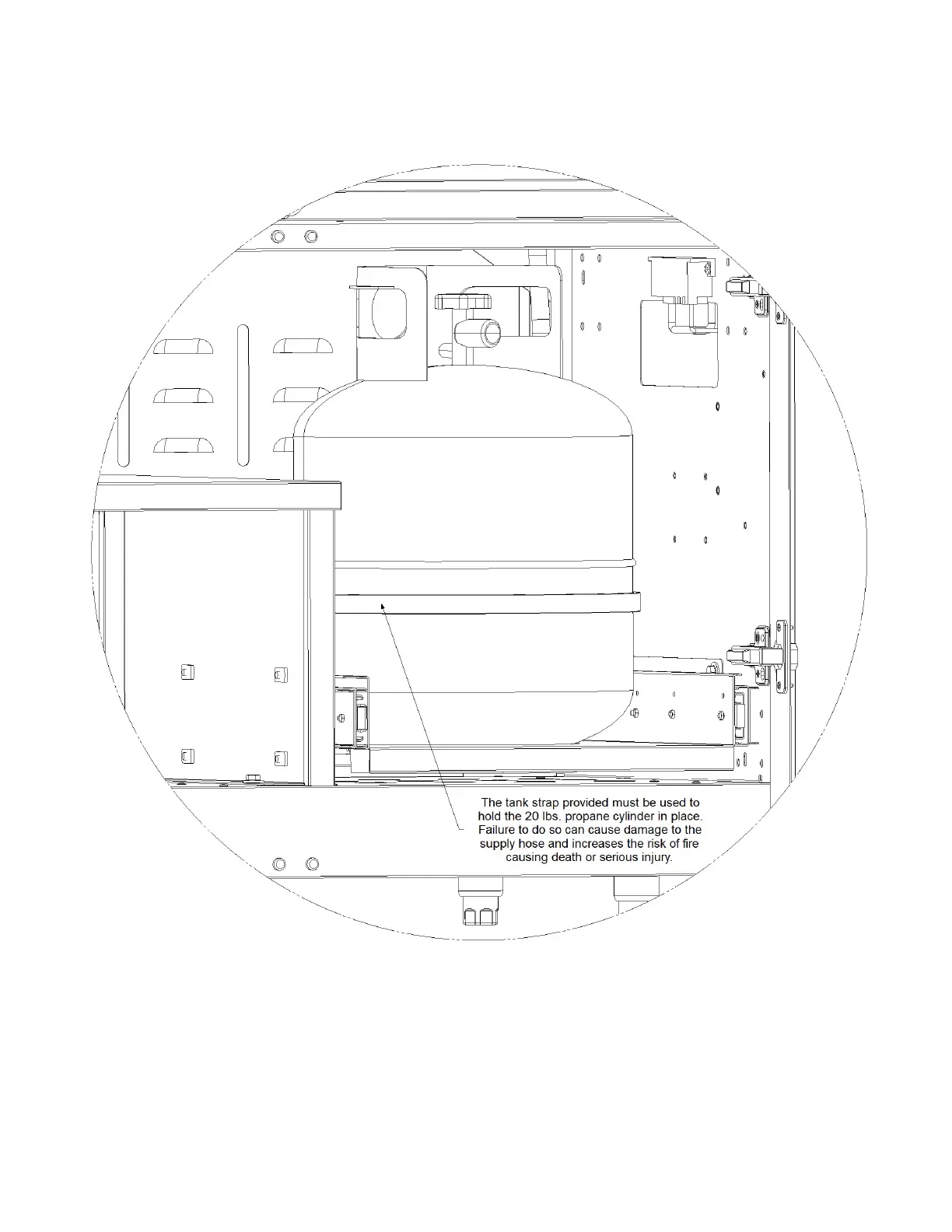 FIGURE 4. LP TANK RETENTION STRAP-GRILL/SIDE BURNER CABINET