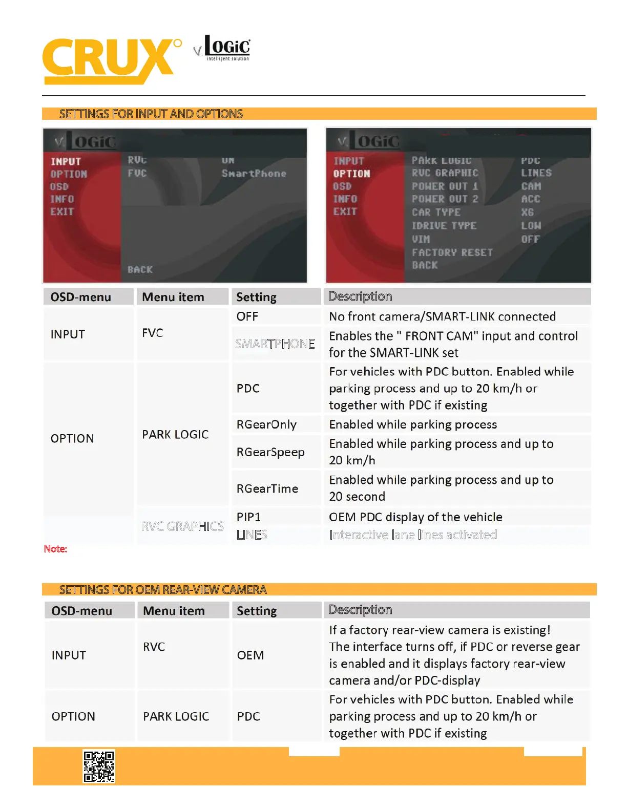 SETTINGS FOR OEM REAR-VIEW CAMERA