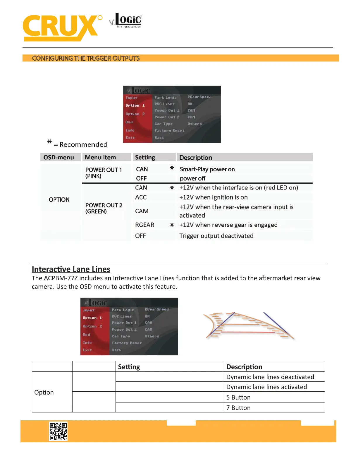 Tip: We recommend for all cameras to use power out setting “CAN” or RGEAR and for Smart-Play,