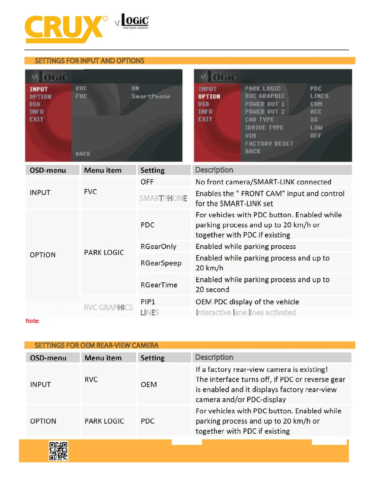 SETTINGS FOR OEM REAR-VIEW CAMERA