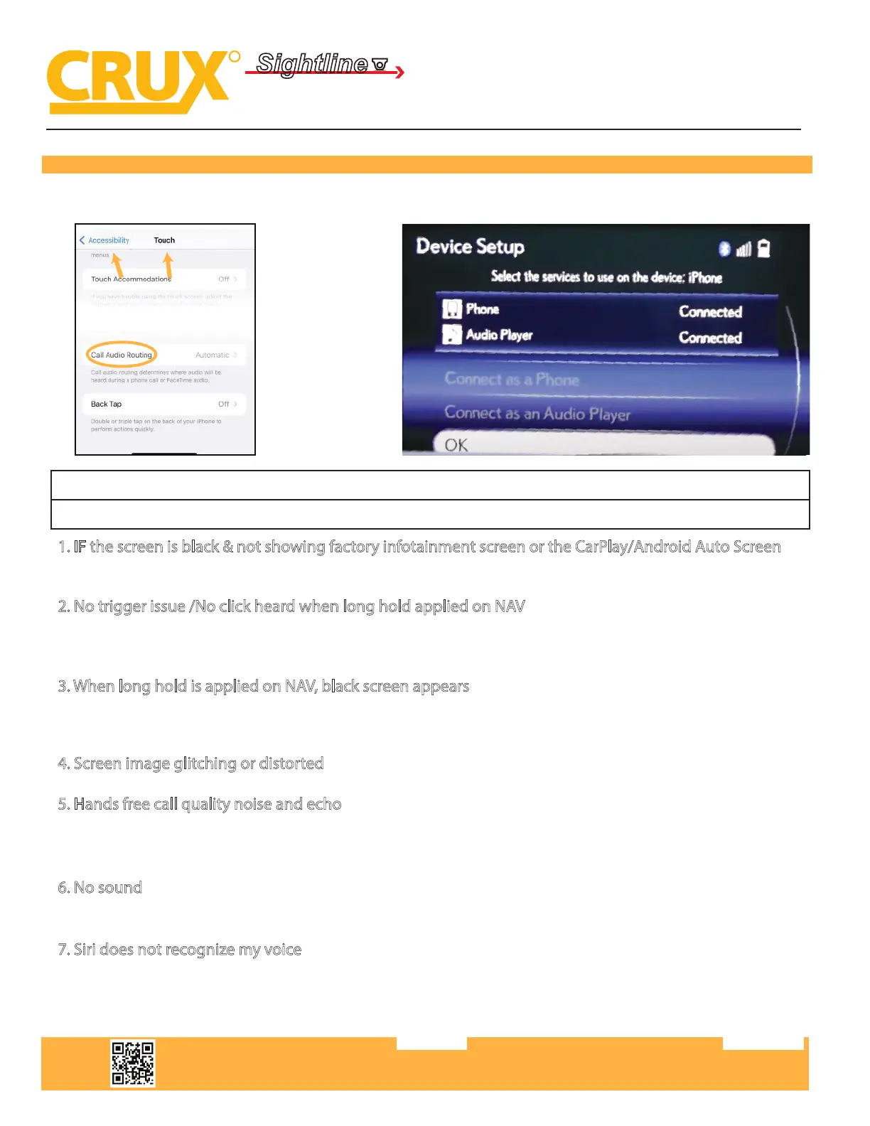 - Conrm Car Media Source is in AUX mode. Conrm sound output from the phone to CarPlay module.