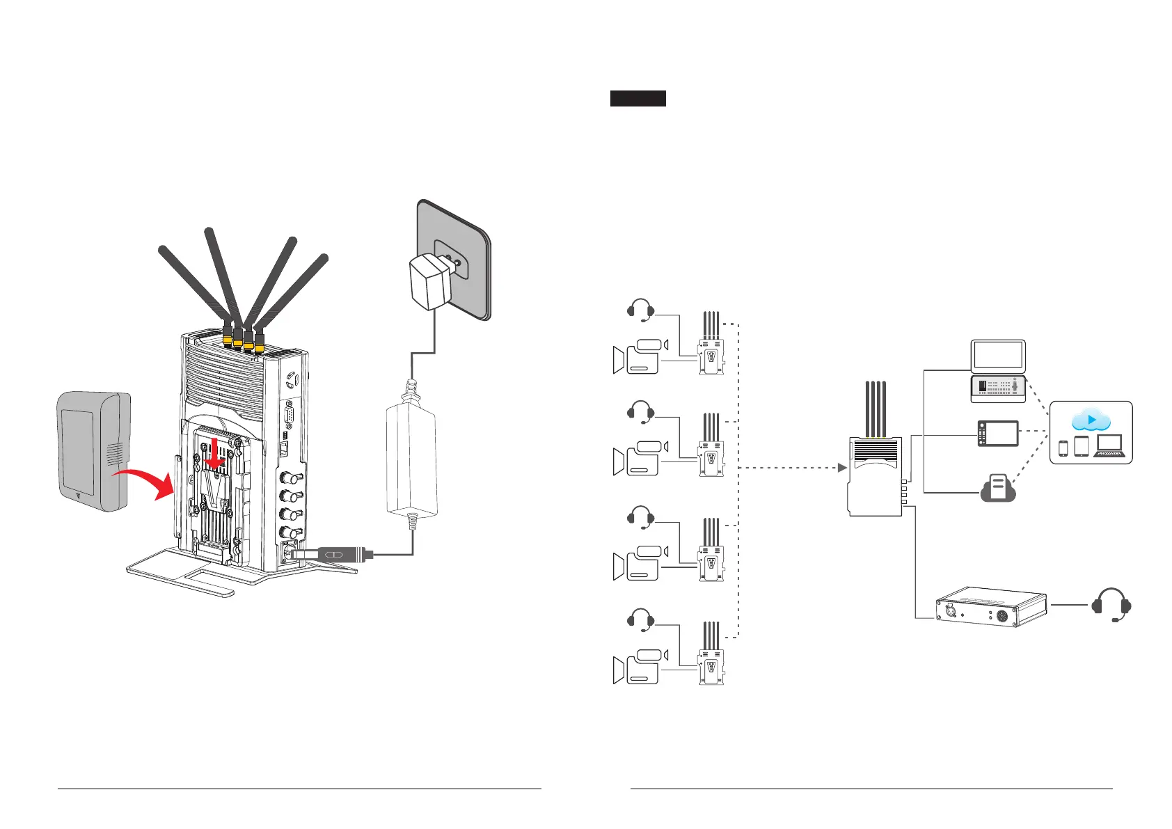 4. The receiver can be powered by both the V-mount lithium battery and DC-IN port via