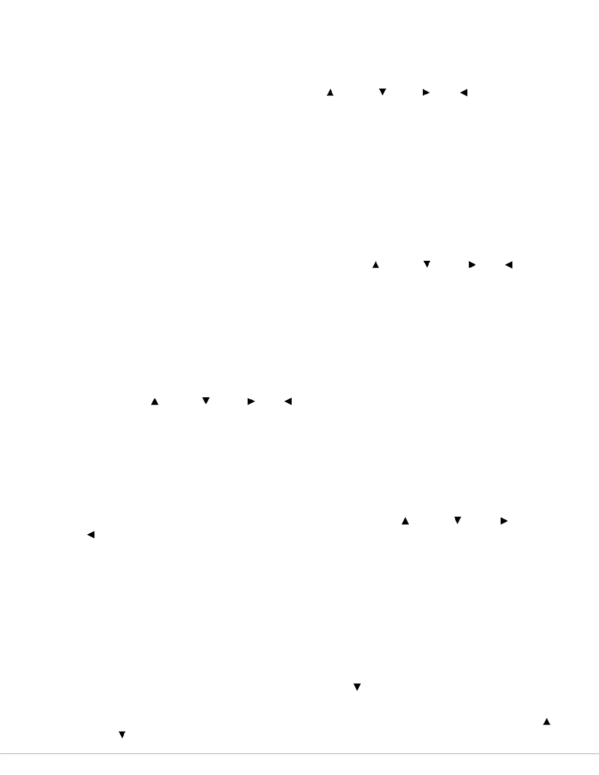 Items are selected within each menu utilizing the up ( ), down ( ) right ( ), left ( ) and