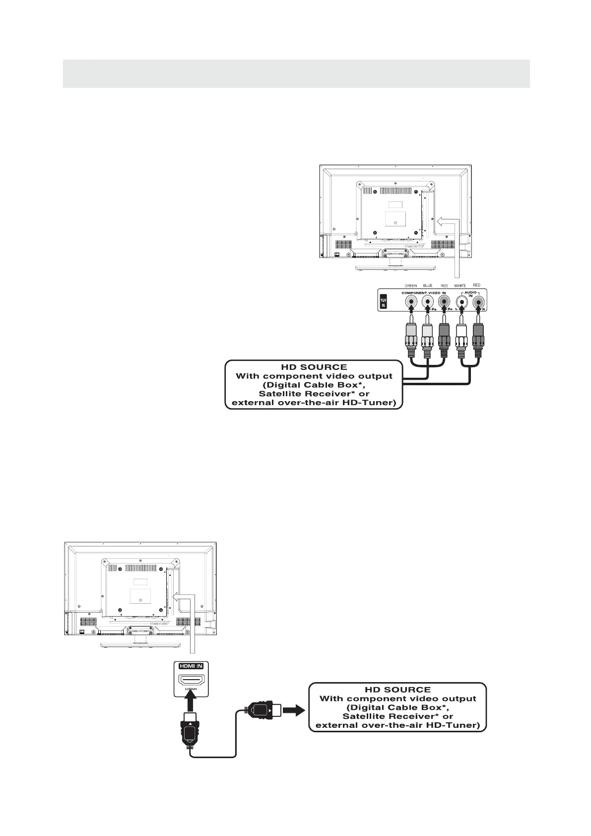 High-Definition (HD) Devices with component video output must be connected to the Y input.