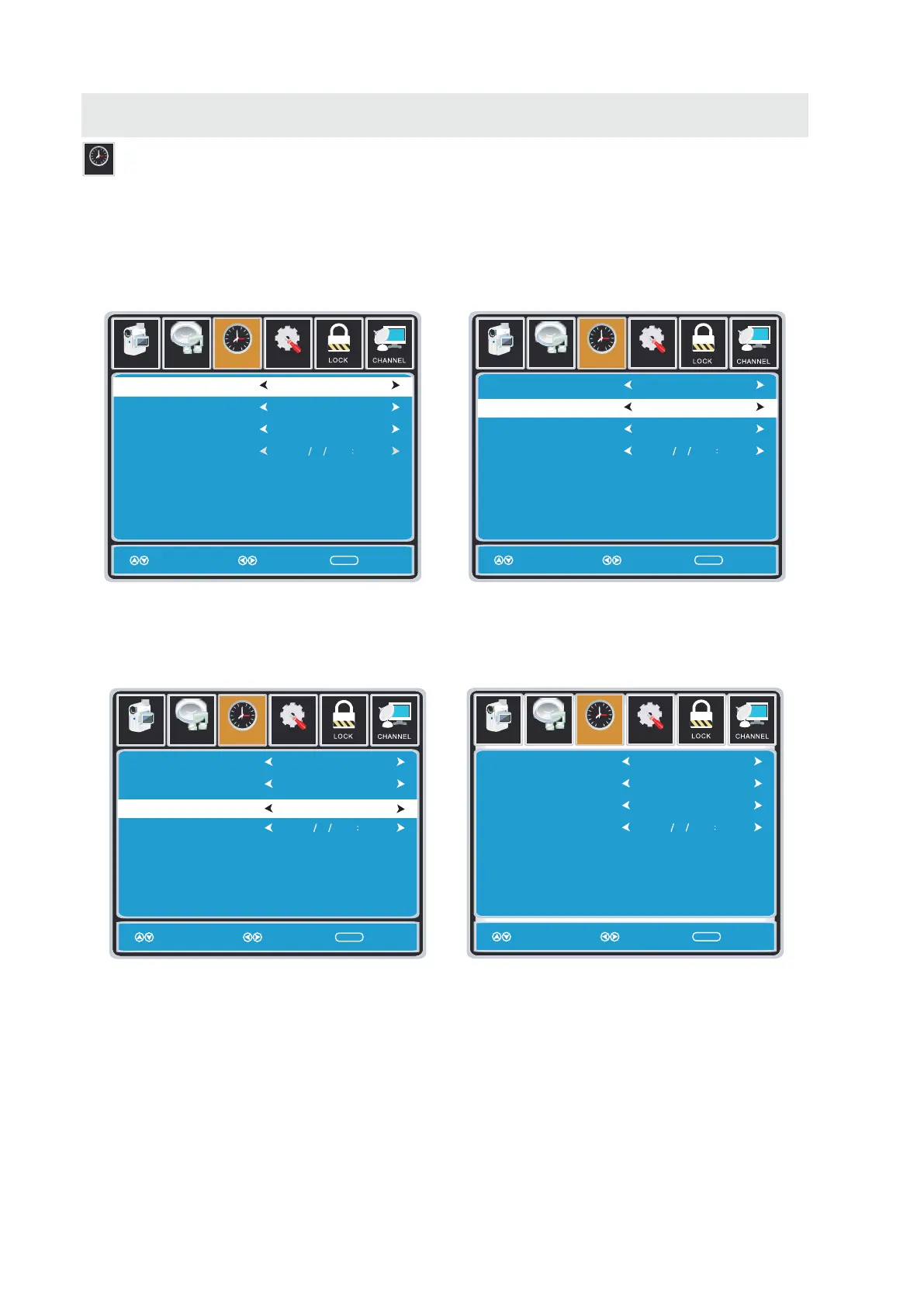 Press the MENU button on the remote control. Navigate using the ◄► buttons to select TIME.