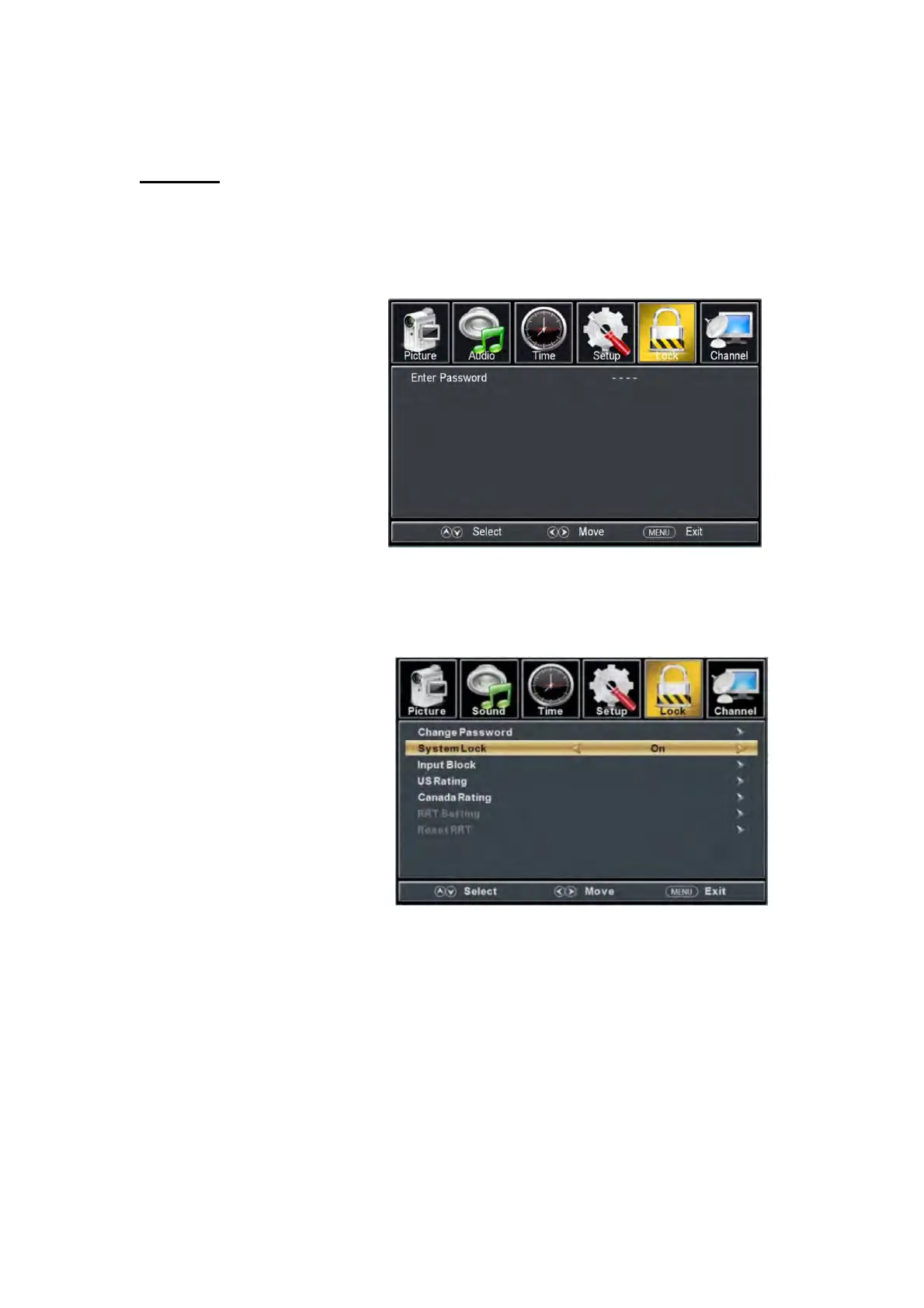 Press “/” button to select “TV” and press the “/” button to select “Block”