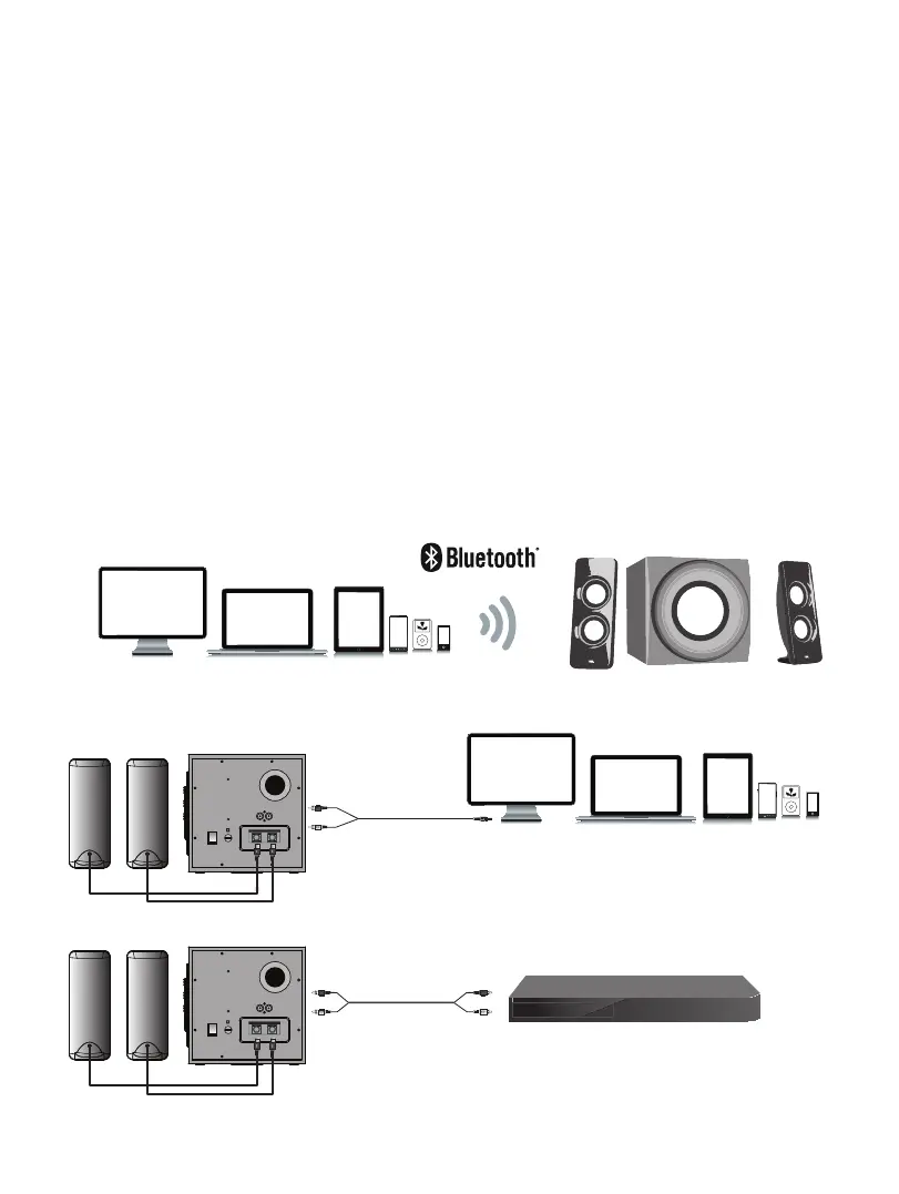 • When the system is on, the speaker system will automatically search and attempt connect with the last
