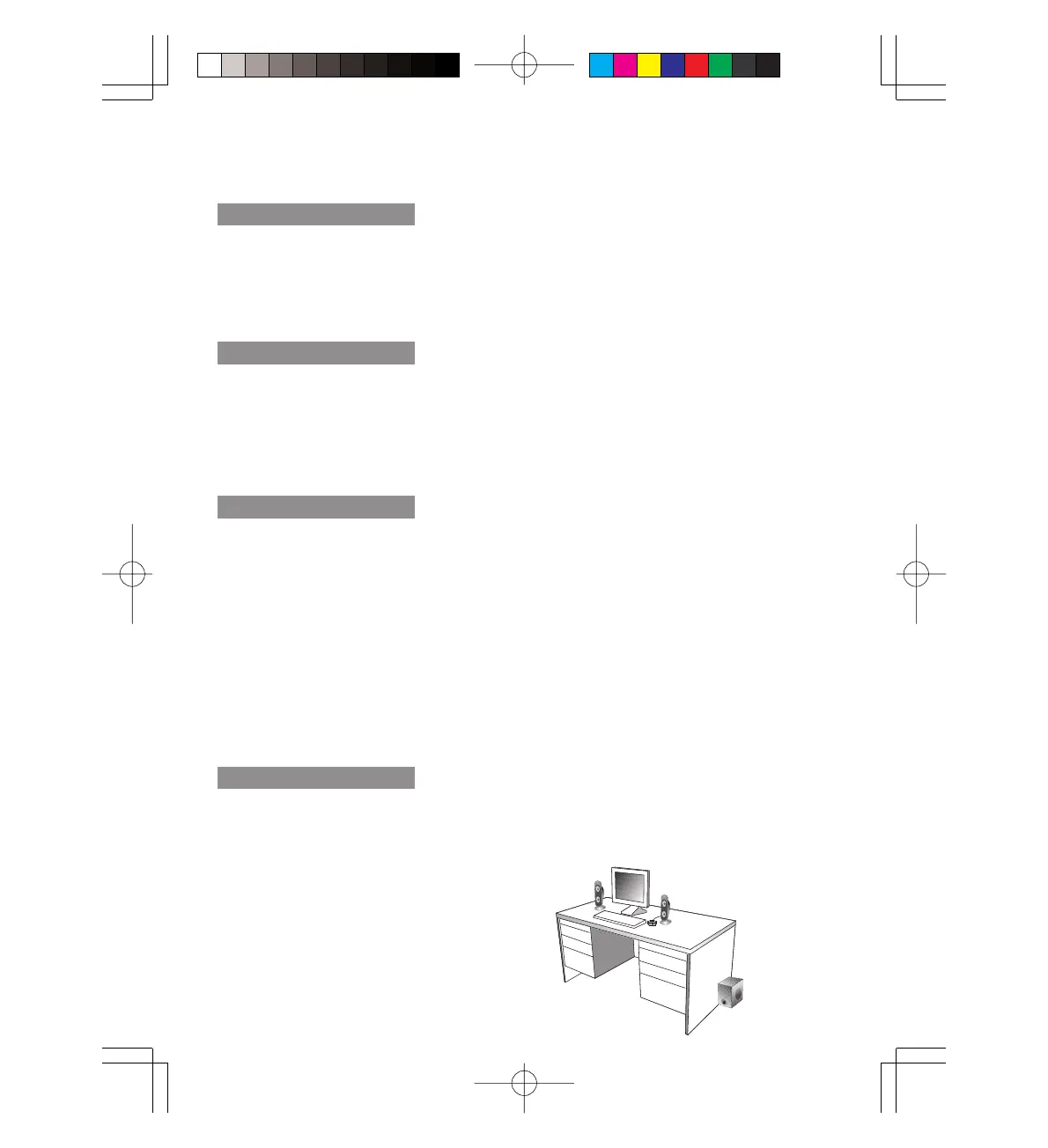 Place the left satellite speaker on the far left corner of the desk. Place the right satellite