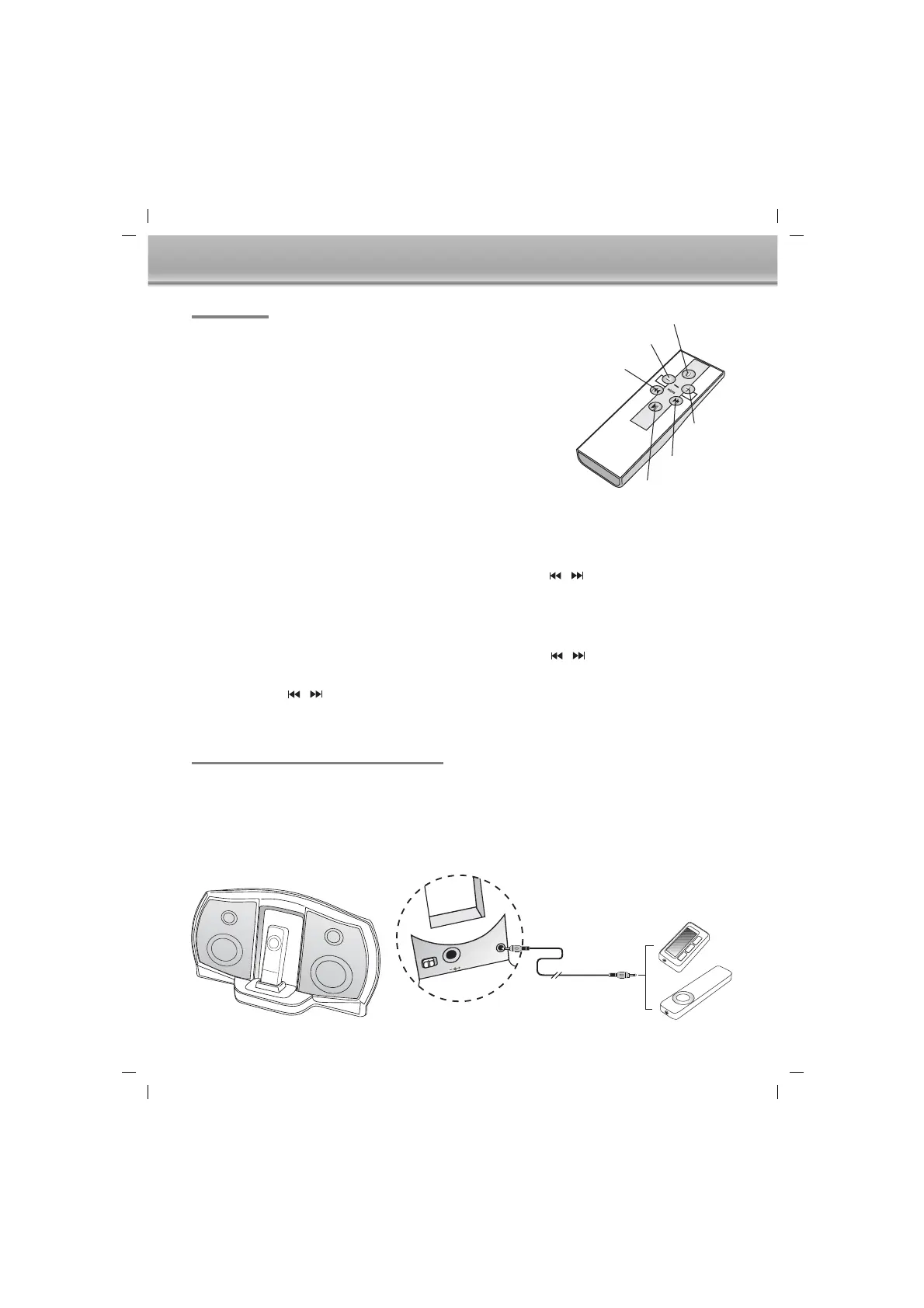 Accensione/Spegnimento e Volume Su/Giù. Le funzioni di navigazione tra i brani del telecomando non