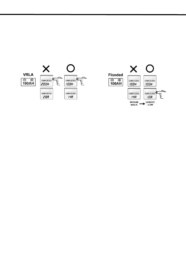 Use LOWEST/LOW current level for setting if the flooded battery is used.