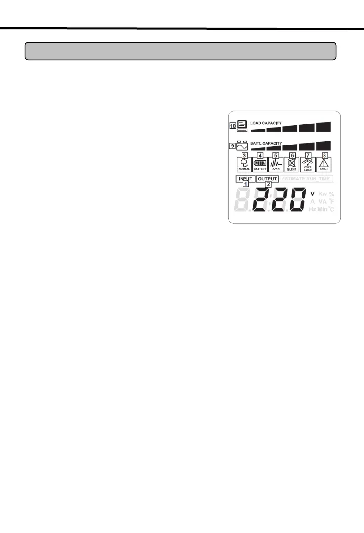 7. OVER LOAD Icon: This icon will illuminate and an alarm will sound to indicate the battery supplied