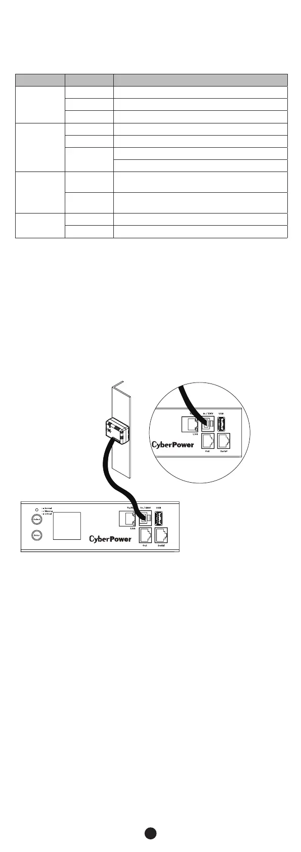 ENVIROSENSOR port on the PDU and the other end into the RJ45
