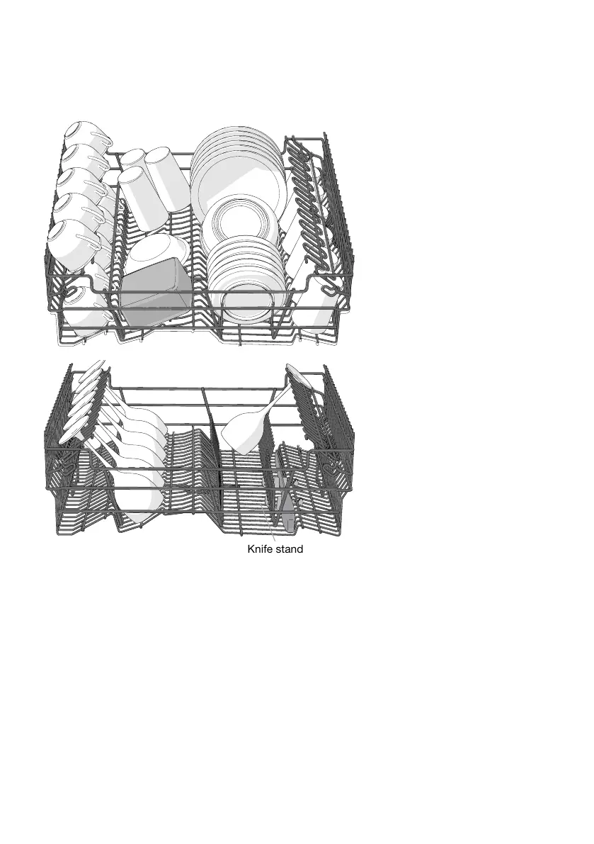 Place glasses, cups, bowls, side plates and saucers in the upper basket. All dirty surfaces should face