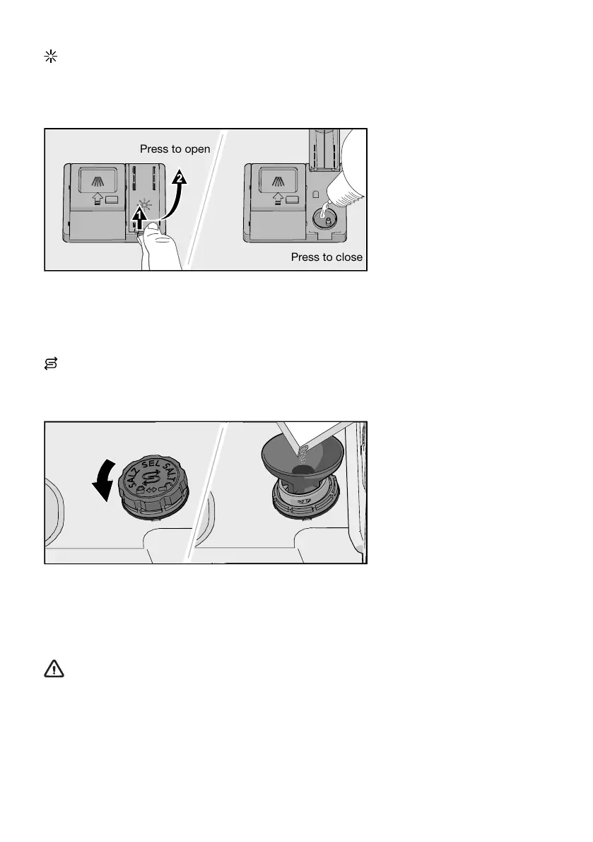 3. Add enough salt to fill the salt compartment (max. 750 gram). Use special dishwasher salt.