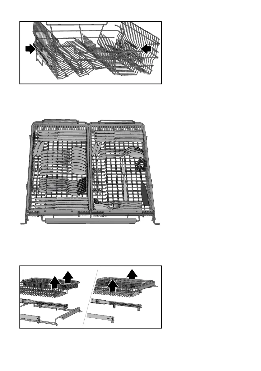 If large items are to be washed in the lower basket, either the middle basket’s two inserts can be