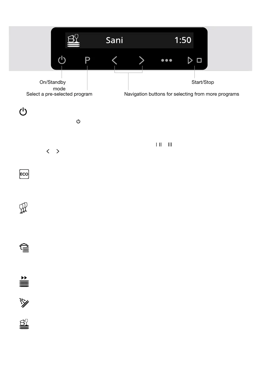 Eco is always pre-selected. To select another program, press , or . You can also select a program