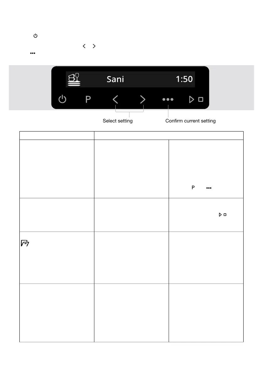 To open the Settings, press or until Settings is shown on the display and confirm your selection