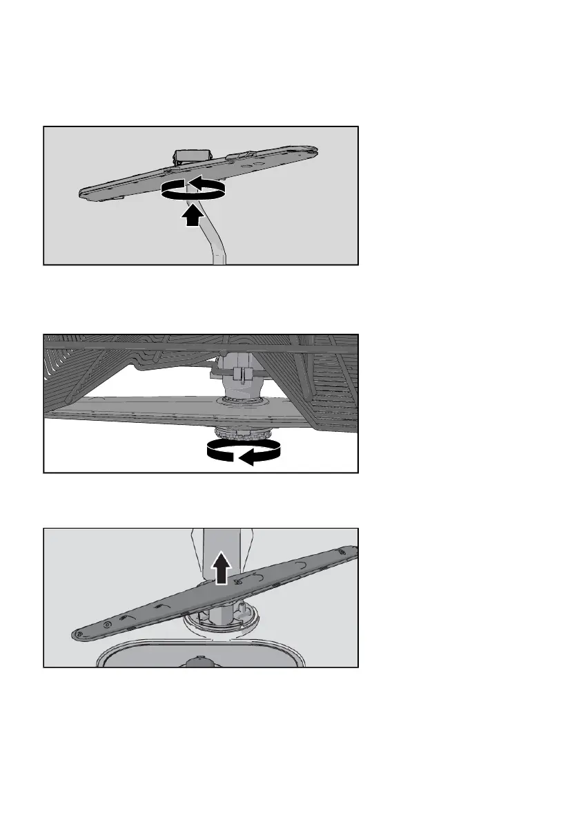 • Unscrew the spray arm bearings anticlockwise to remove the spray arm from the upper basket.