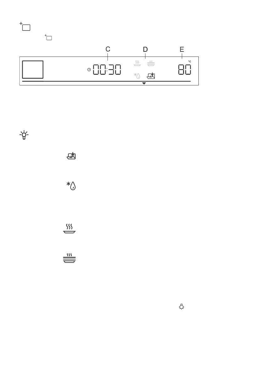 To activate the child lock, press and hold (for 5 seconds) the light key . Loc will appear on the