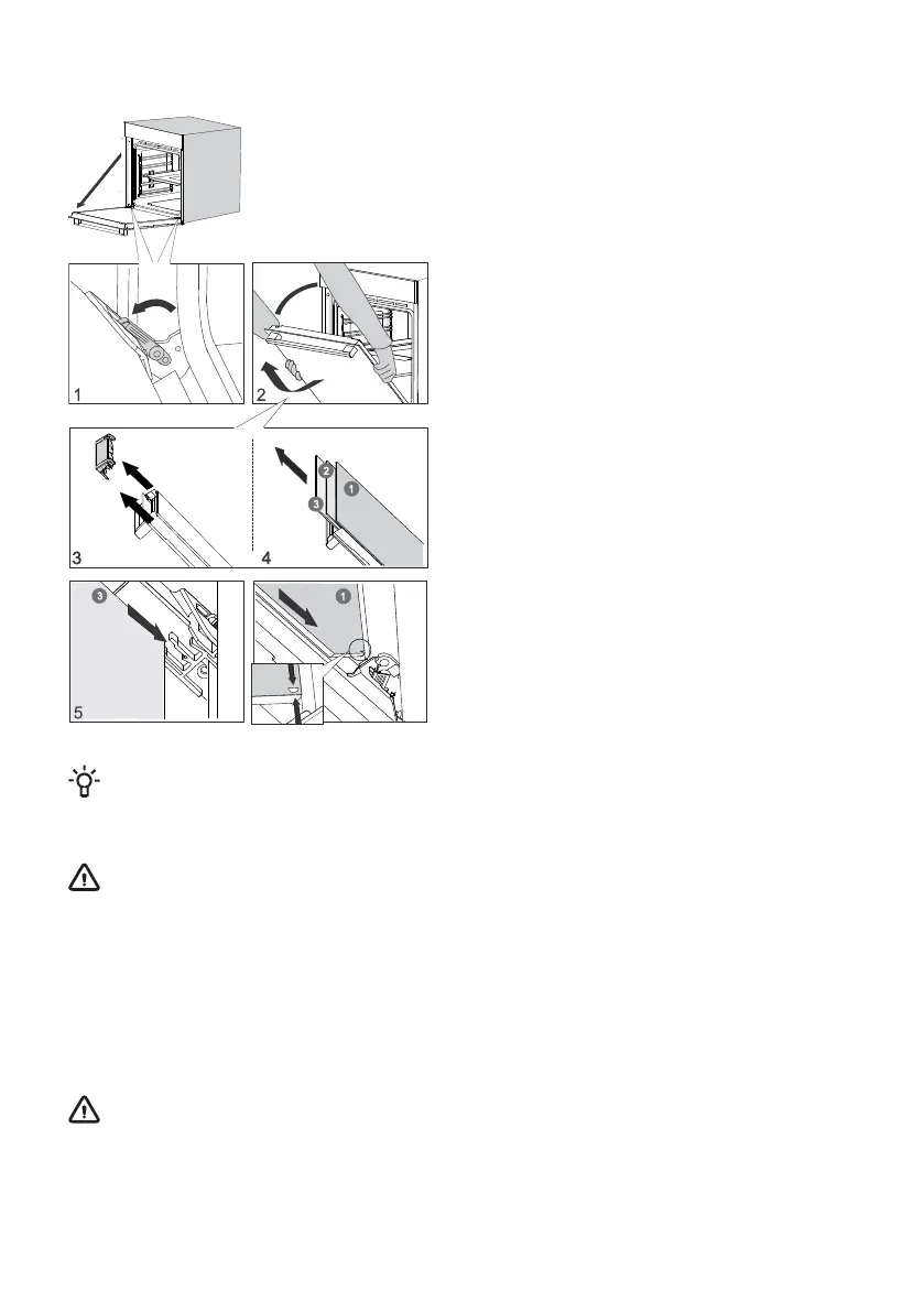 To replace the door, follow the reverse order. If the door does not open or close properly, make