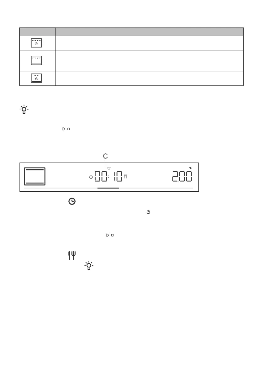 I detta läge kan du ange hur lång tid ugnen ska vara igång (tillagningstid).