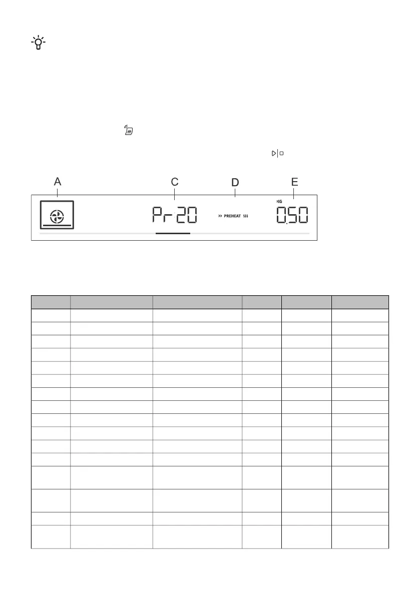 Tryck länge på knappen för att visa de automatiska programmen på displayen (se tabellen). I de