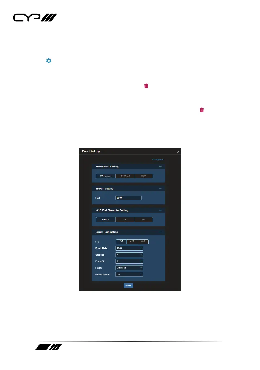 displayed in the “TCP Server” eld. Click on the trash icon (