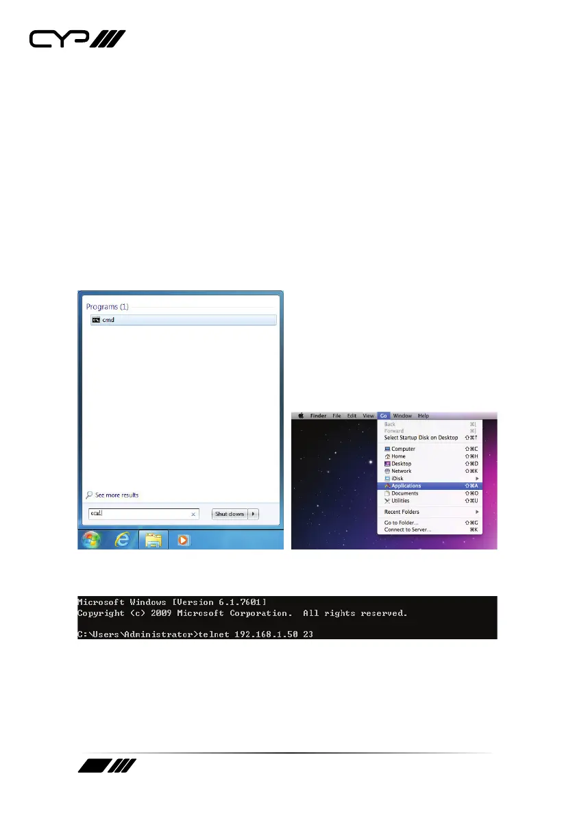 Once in the CLI (Command Line Interface) type “Telnet” followed by the IP