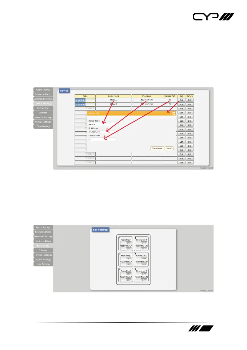 Click on the “Device Settings” tab to enable/disable or add/remove