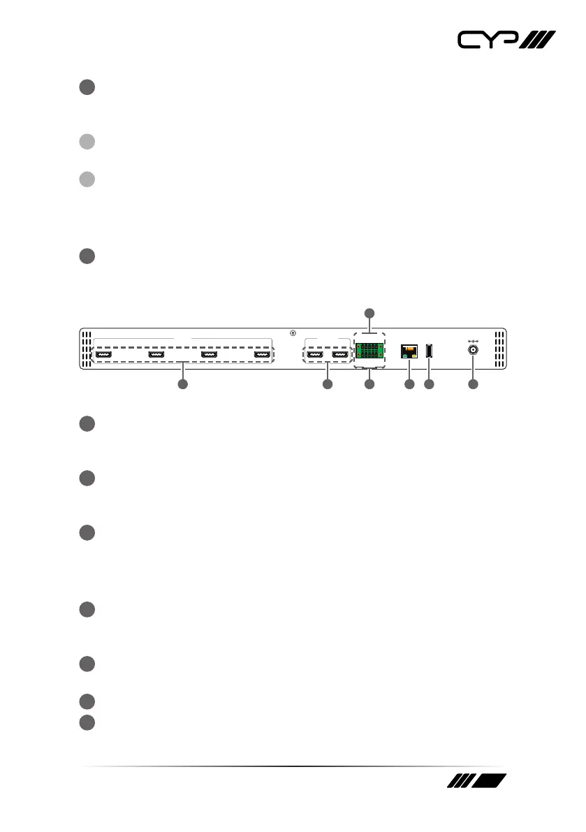 HDMI IN 1~4: Connect to HDMI source equipment such as media