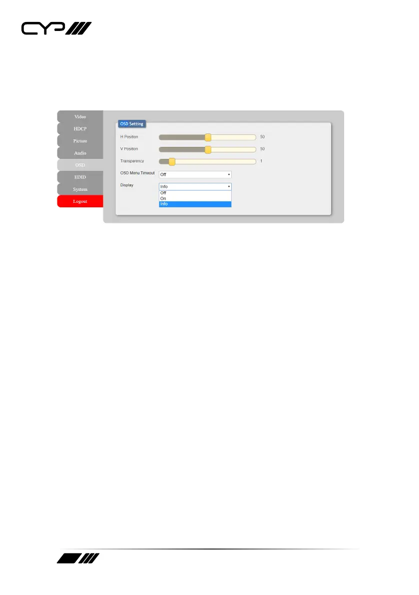 2) Transparency: Controls the transparency level of the OSD menu’s