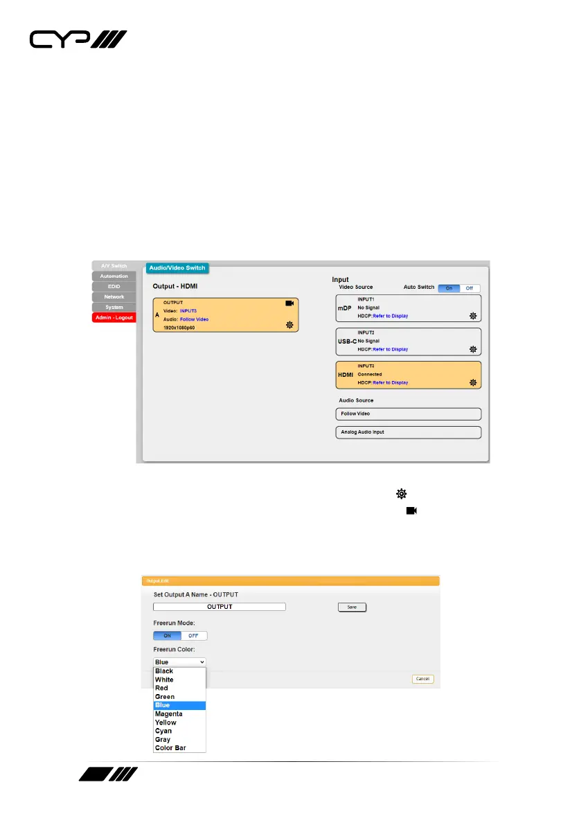 This tab provides video/audio routing control as well as control over