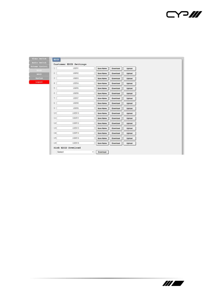 Upload: To upload a User EDID, press the “Upload” button next